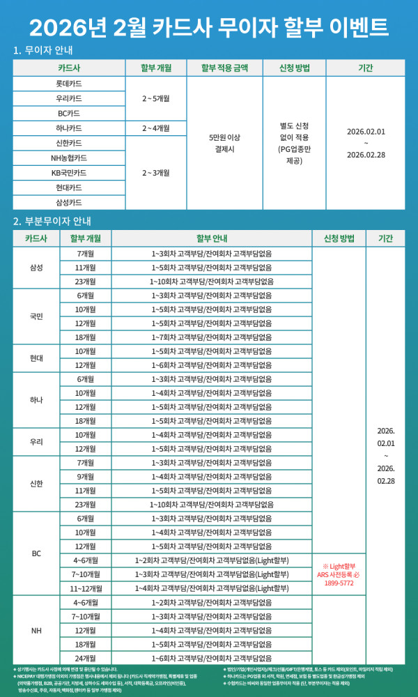 [2026년 2월] 카드사 무이자 할부 안내